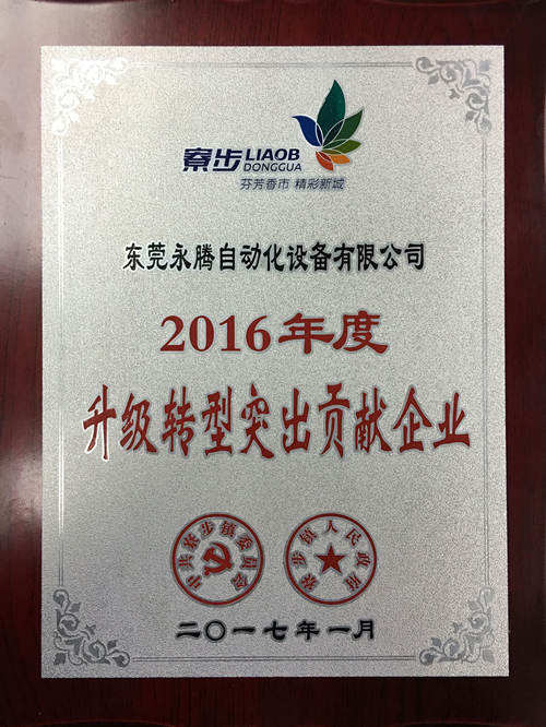 祝贺永腾获得2016年度升级转型突出贡献企业