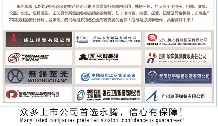 永腾弹簧机、线成型机畅销于美国、欧洲、东南亚,南美洲等众多国家。在国内外广受好评。合作的企业更是数不胜数。